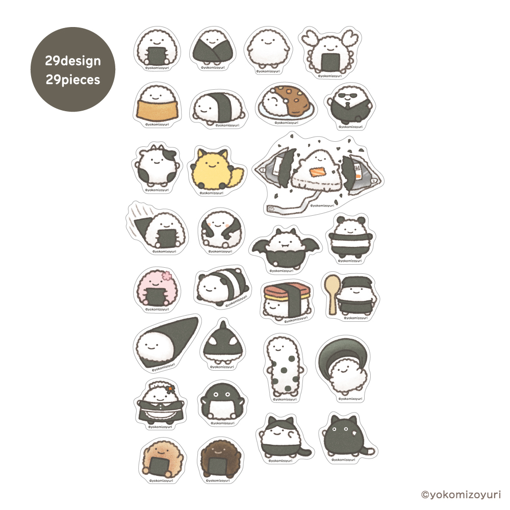 いろいろなのりおにぎりがかわいい29種類29枚入りのフレークシール!※一会計につきお一人様1点までとなります。