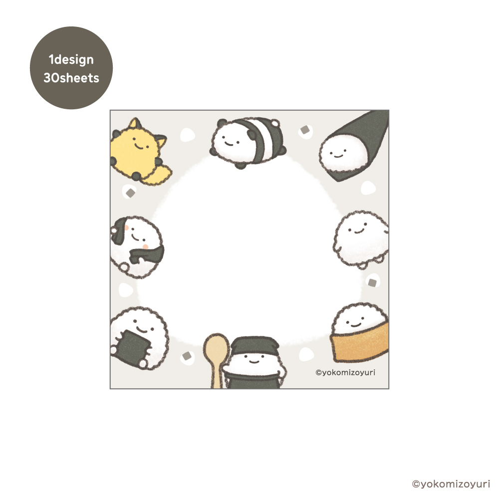 いろいろなのりおにぎりが描かれたスクエア付箋。※一会計につきお一人様1点までとなります。