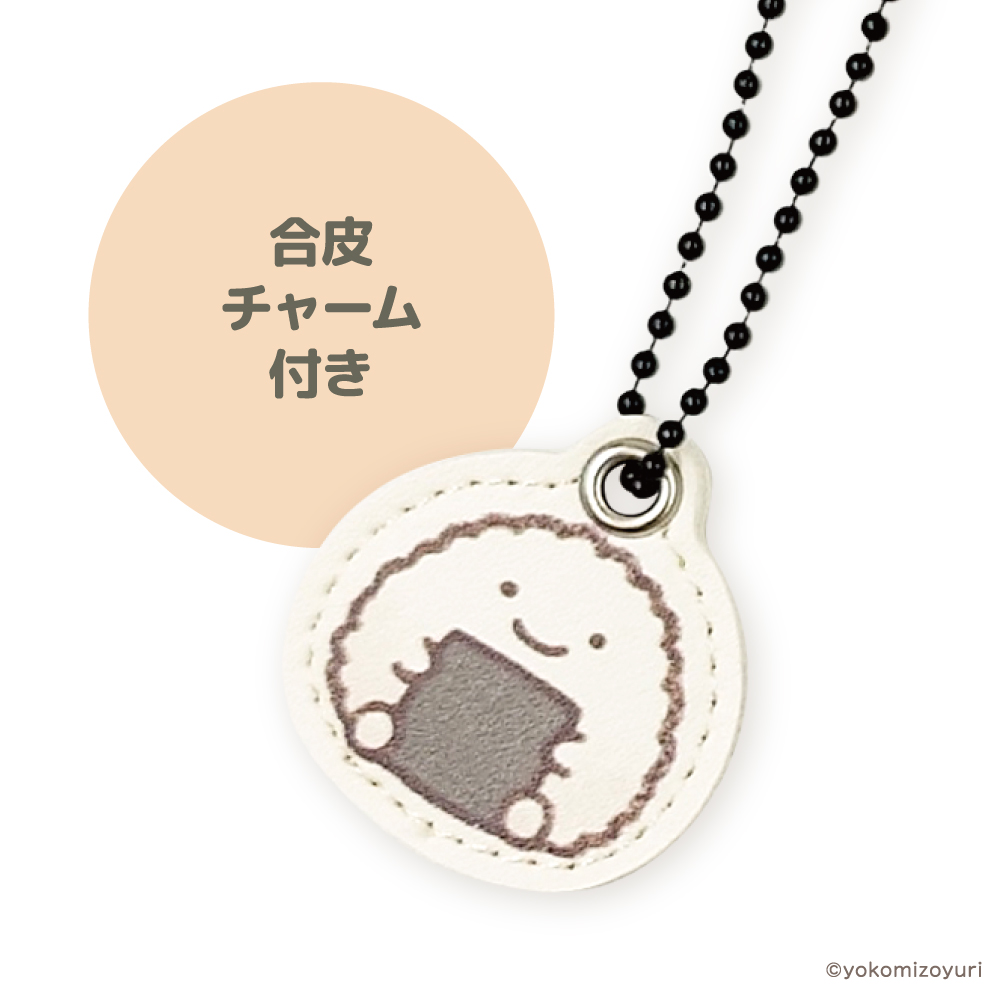 のりおにぎりの合皮チャームがついたメッシュレイヤーポーチ。